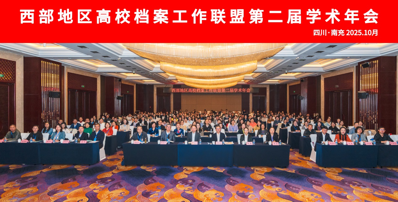 2025年 10 月 22 日至 25 日,由西部地区高校档案工作联盟主办、四川省高等学校档案工作协会与川北医学院联合承办的西部地区高校档案工作联盟第二届学术年会在四川省南充市顺利举行。本次大会以“使命与创新:激发档案新质生产力,赋能西部高校高质量发展”为主题,汇聚西部 13个省区市94所高校的200余名档案工作者,共话档案事业发展新路径,共商数字时代档案工作创新方向。